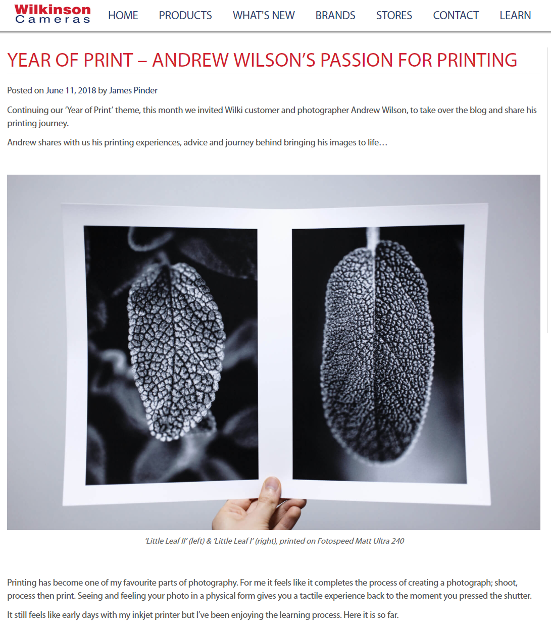 June - First guest blog for Wilkinson Cameras about my printing journey…